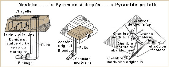 3/ Schéma des Mastaba aux Pyramides – http://mag.monchval.com/egypte-des-mastabas-aux-pyramides/